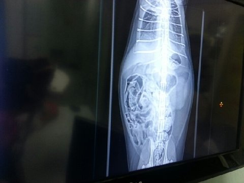 둥이의 마지막 배려 였을까요... 둥이는 복막염으로 흉수가 가득 차 있었습니다.