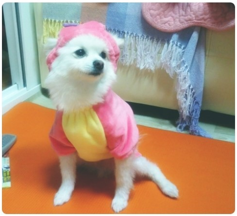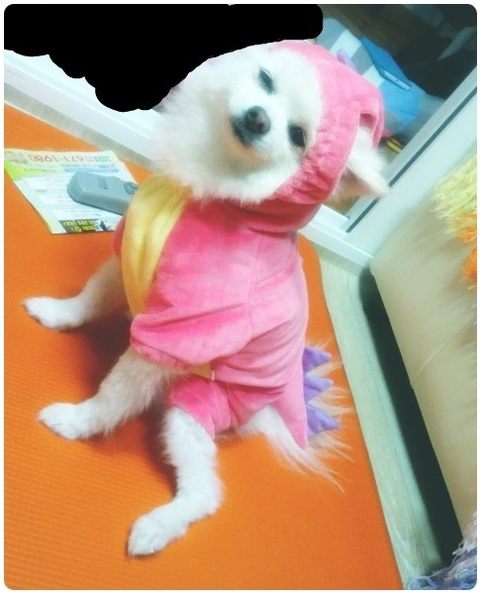 저희 밍이 공룡옷 입고 찍은게 너무 귀여워서 올려봐요~