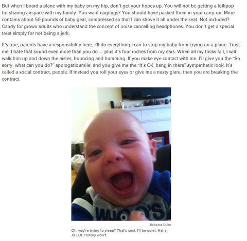 비행기에서 제 아이가 울지 않을 수 있도록 난 최선을 다 할거에요. 정말이에요, 제 아이 우는 소리는 당신보다 제가 더 싫어요. 게다가 바로 내 귀에서 십센치 거리거든요.