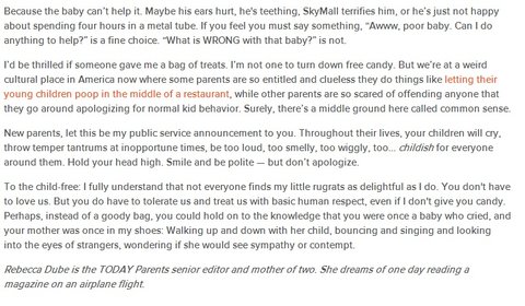 왜냐하면 아기는 어쩔 수 없으니까요. 어쩌면 아기는 귀가 아프거나, 이가 나고 있거나, 스카이몰이 무섭거나, 아님 이 고철통에서 4시간이나 있는게 질렸을 수도 있습니다.