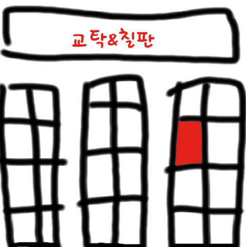 칠판을 기준으로 가운대 2줄, 왼쪽에 2줄 오른쪽에 2줄씩 있는데