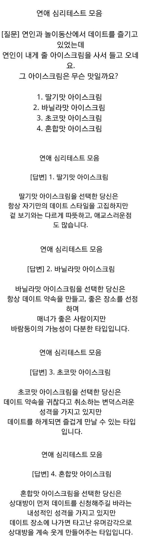 지난 번에 혈액형 심리테스트가
