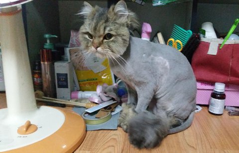 목나가도록 니야아아옹!! 울어대고 미용하기 얼마나 싫으면 엄청 발버둥치는지 보는내내