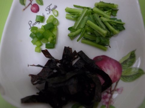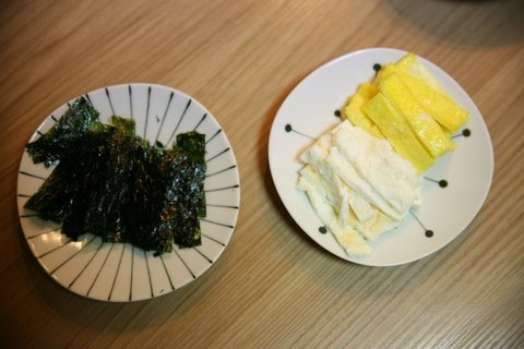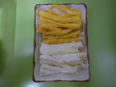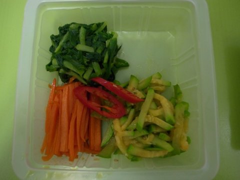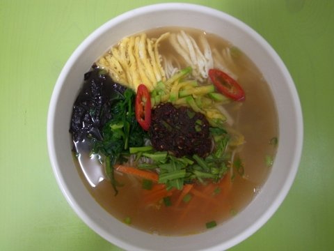 잔치국수: 멸치육수국물 우러내어 달걀지단,당근,애호박,부추 ,쑥갓 요렇게 들어갔어요~~