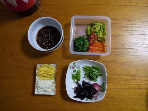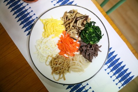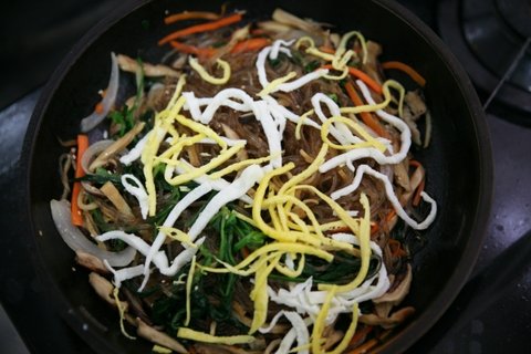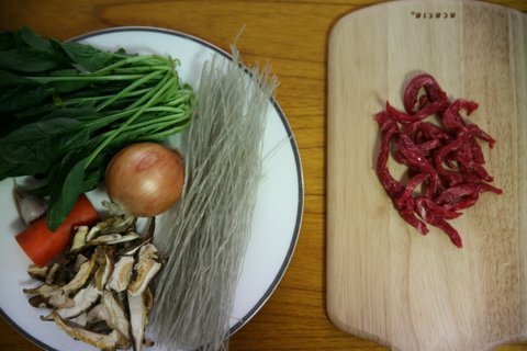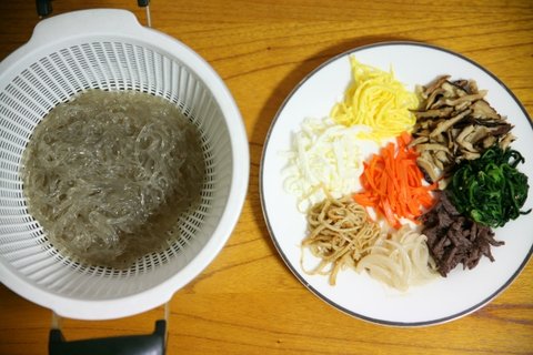 잡채만들기 : 국산표고버섯 소고기 시금치 당근 양파 오뎅 달걀지단 요렇게 들어갔어요 ㅎㅎ