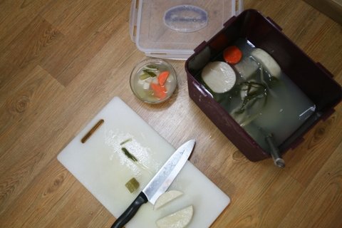 물냉면만들기: 냉면육수와 동치미국물 섞어서 만들었습니다.