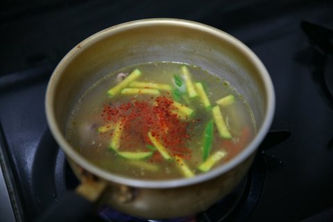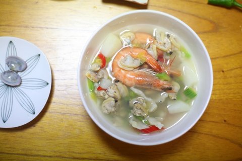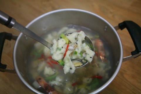 해물수제비만들기 : 멸치국물육수내고 백합 바지락 새우 넣고 만들었습니다.