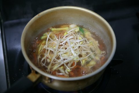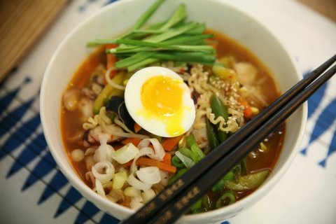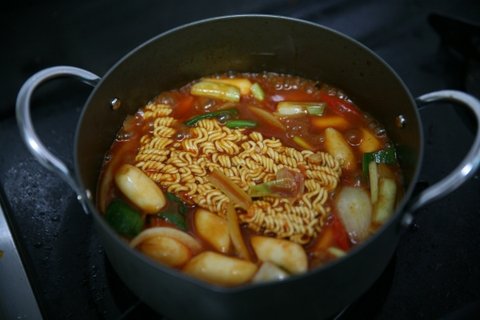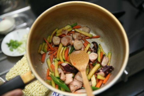 해물라면 만들기 : 해물과야채 올리브유에 달달 볶아서 국물내어주고 만들었습니다.