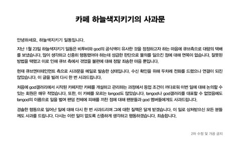 악의적인 마음 없었다는거 알고있습니다. 한 가수를 좋아하는 팬으로서 그마음 너무나도 잘 압니다. 내 가수를 위해 시작했던 일이고... 일이 이렇게되니 안타깝습니다. 큐브가 원래 피드백이 없기로 유명합니다. 저희들도 답답합니다... 이번 사건때문에 괜한 루머들도..억울하신 부분도 있을거라 생각합니다. 팬지분들 이번일로 상처많이 받으셨을텐데 힘내세요. 그리고 박준형님같은 좋은 리더두신거 부럽습다. 우리 비투비오빠들도 god선배님들처럼 멋있는 가수로 성장했으면 좋겠습니다.