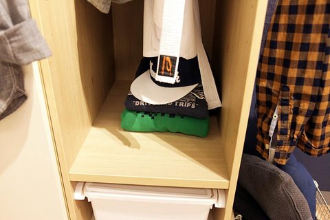 옷장 옆에는 물건들을 쉽게 정리 할 수 있는