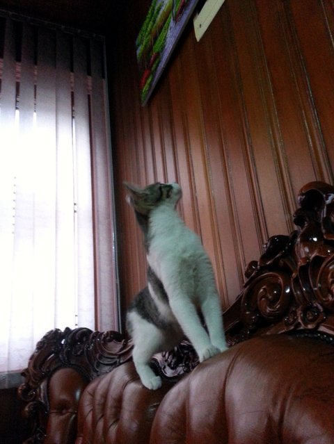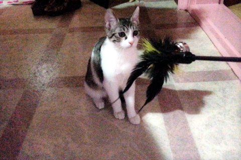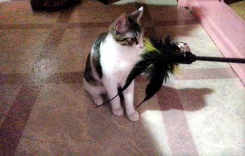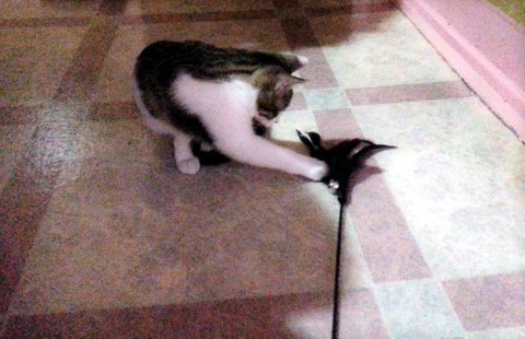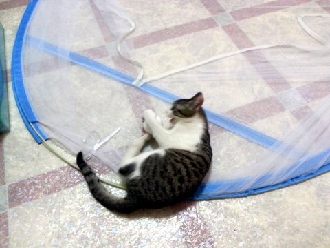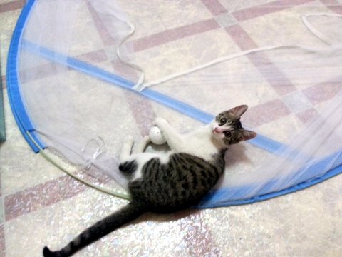 모기장 벽에 세워 놓는거 다 쓰러트리고 트리에 달린 공 떼네서 실컷 노네요^^