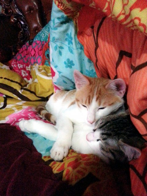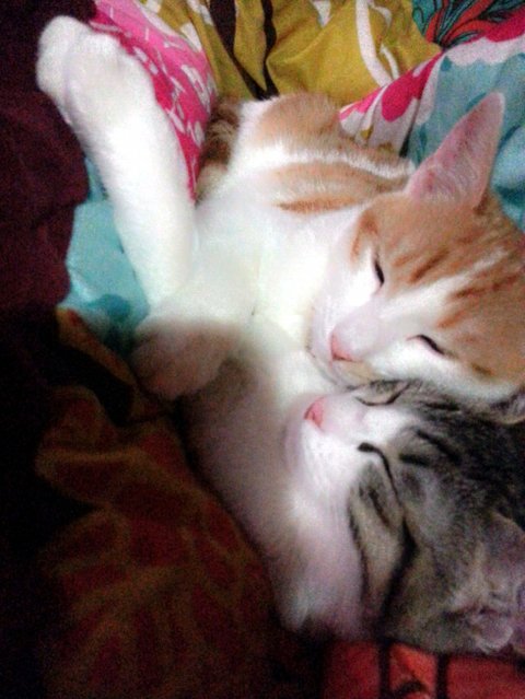 둘이 온 집안을 뛰고 휘 젖고 다니더니 평화롭게 얼굴 맞대고 자네요~ㅋㅋㅋ