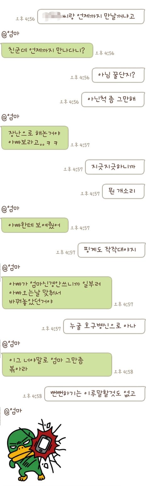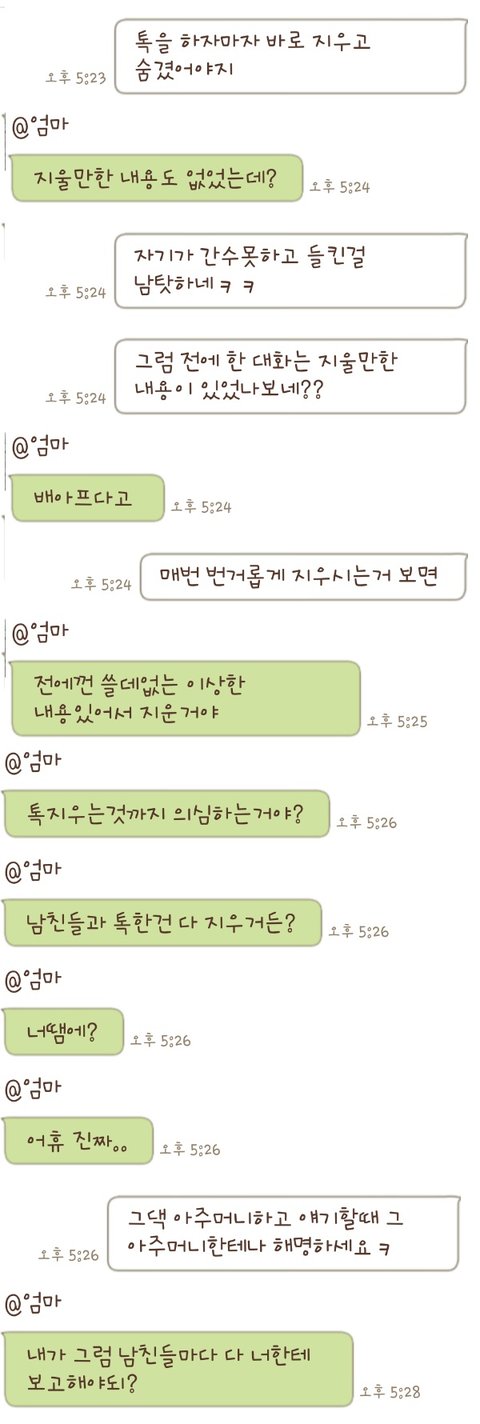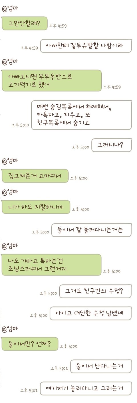 기분이 너무 이상해서 엄마 카카오스토리를 들어가봤고, 그날 A가 남자인거 들키셨습니다.