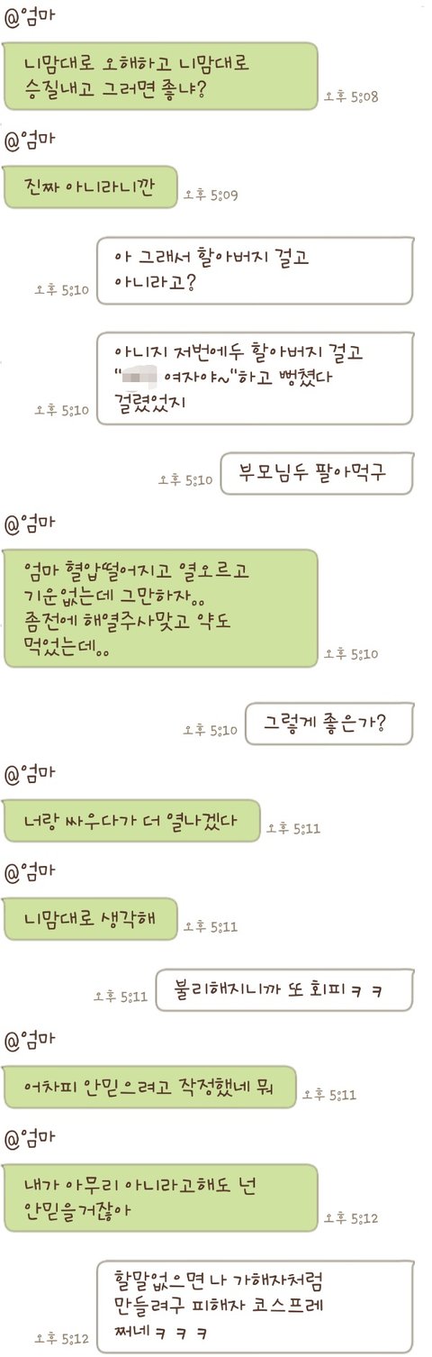 저도 엄마의 거짓말에 지쳐 이제 무슨 말이든 다 거짓말로 들리구요.