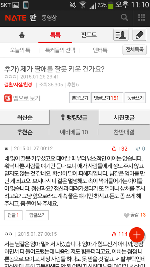 전 지금까지 저와 엄마사이가 이상하다고 생각한적이 없습니다 그런데 지금 톡선에 올라와있는글을 읽고 의구심이 들어서 글을써봅니다.자작어니고 진짜 궁금해서 그래요 제친구들 제사정다알고있지만 그래도 물어보기는 좀그래서요.