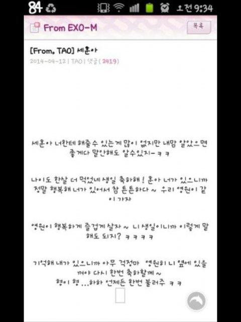 세훈이생일날타오가쓴편짘ㅋㅋㅋㅋㅋㅋㅋㅋㅋㅋ