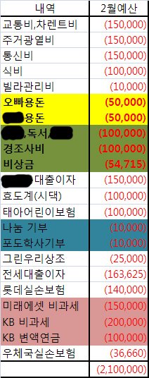 210만원으로 예산을 짜보니. 생활비가...또르르 ㅠ_ㅠ