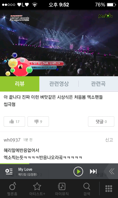 나 멜론으로 시상식보고있는데