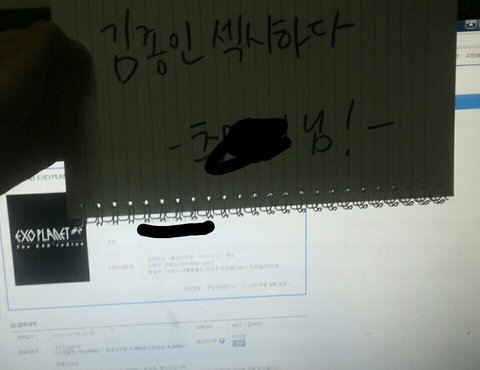 지금 이런식으로 종인이섹시하다랑 내이름적게해서 인증받아내고있거든 내가 지금당장 신고한다고 협박하면 잽싸게 다른ㄴ애들한테 팔아버릴수있으니까 입금은내일해준다하고 내일아침에 바로 yes24암표신고넣어버릴생각임 더찾을거다..제발 양심적으로 살자 얘들아