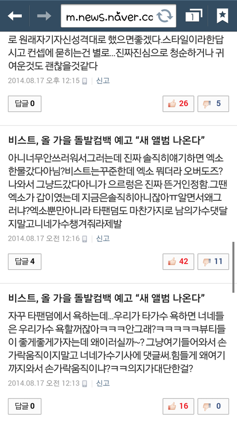 엑소기사에만 악플ㅋㅋㅋ아 딥빡ㅋㅋㅋㅋ