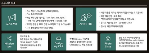 - 도슨트 투어: 전시 전문가와 함께 작품에 대한 설명을 듣는 전시 투어 프로그램