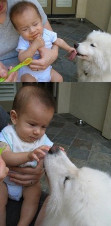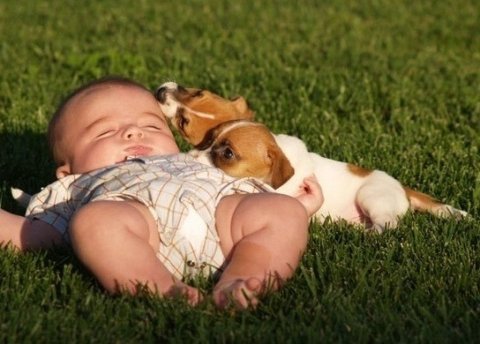 개와 아기의 순수한 우정