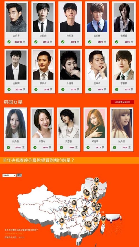 이번 투표는 유명 한국 소속사에서 추천한 한류스타 100명과 아이돌 그룹을 대상으로 진행됐다. 2월 말까지 설문이 진행될 예정이지만, 지난 한 달간 진행된 투표에서 격차가 크게 벌어지며 어느 정도 윤곽이 드러났다.
