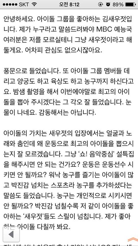 아육대 주최측에 보내는 어느팬의 기도