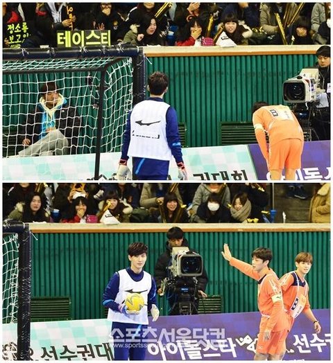 풋살 하다가 팬석에 공이 날라갔었나봄