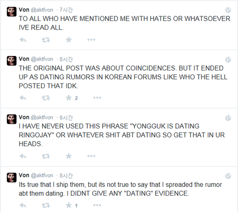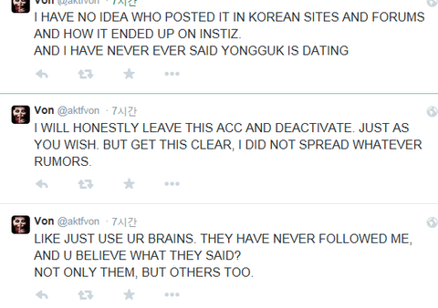 니들이 원하면 계폭하겠지만 절대 루머 퍼트린적없고 둘이 사귄다고 말한적없고