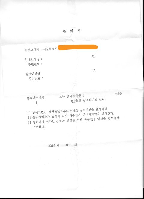 근데 우리가 1억2천 보증금을 7,700으로 감액해준다는 합의서를 써주면 산다 했다고...