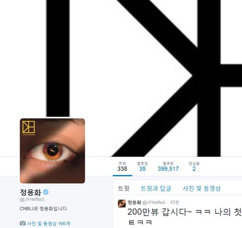 정용화 트위터 대문사진에 프리메이슨표식 눈형상을 띄고있음.