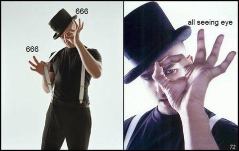 프리메이슨 상징하는 눈형상을 연상케하는 손동작