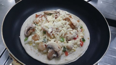 제일먼저 또띠아 2장으로 오븐없이 후라이팬으로 굽는 피자에요.
