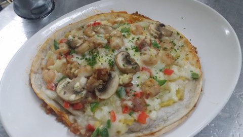 또띠아 + 토마토소스 + 모짜렐라치즈 + 또띠아 + 고구마 무스 + 각종 토핑을 얹고 후라이팬 2개를 겹쳐서 약불로 굽기만하면되요! 근데 또띠아가 너무 비쌈 ㅜ
