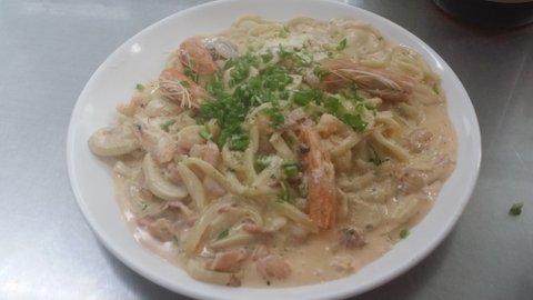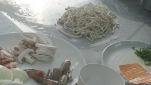 이건 쉬림프 크림치즈 스파게티 만드는중! 시중에 파는 스파게티면은 고무같은 맛이나서 저는 칼국수면을 사서 쓰거나 아니면 직접 반죽해서 먹어요!
