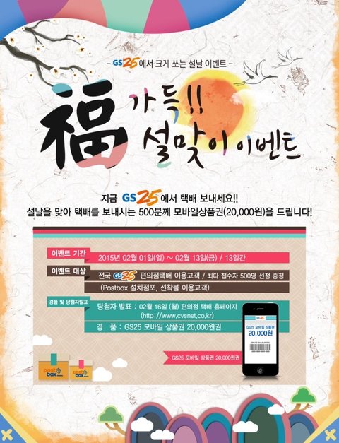 2월 13일까지 gs25에서 택배 많이 보낸 500명한테 상품권 2만원짜리 준다네여..ㅋㅋ