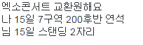아니 교환인데 자기가 굽신굽신 해야는데 2자리를 원하고 있엌ㅋㅋㅋㅋㅋㅋㅋㅋㅋㅋㅋㅋㅋㅋㅋㅋㅋ 무슨 좌석 0번대면 몰라도