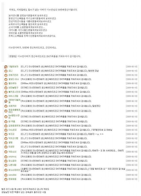 아직도그럼ㅋㅋㅋㅋㅋㅋㅋㅋㅋㅋㅋ 이수만 아티움에 나타나니까 팬들이 아버지!!!!아버지!!!!!!거리면서 쫓아감ㅋㅋㅋㅋㅋㅋㅋㅋㅋㅋㅋㅋㅋㅋㅋㅋㅋ 팬도그렇고 스엠 소속가수들이 다 아버지로 생각하면서 러브샷도하고 셀카찍으면서 자기그룹 만들어줘서 고맙다니ㅋㅋㅋㅋㅋㅋㅋㅋㅋㅋㅋㅋㅋㅋㅋ