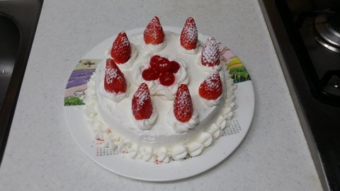 머핀 장식하고 남은 생크림으로 아이싱한 딸기 생크림 케이크에요ㅎㅎ