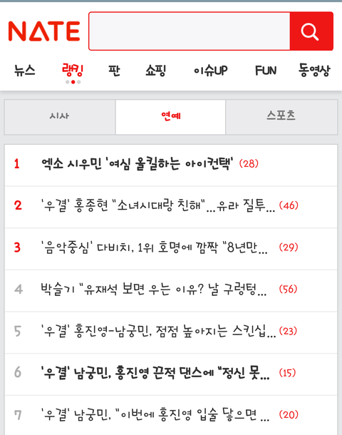 시우민 랭킹뉴스 1위!!!