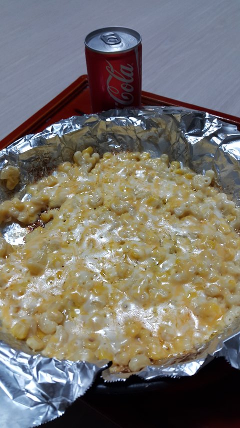 버터두른 팬에 옥수수볶다가 마카로니 넣고 마요네즈 넣고 섞음