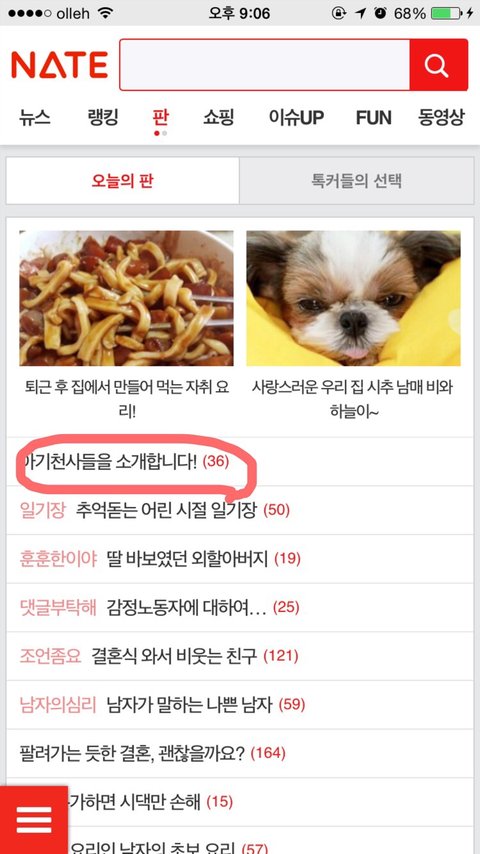 꺄 네이트 들어가니 오늘의 톡에 뙇!!!