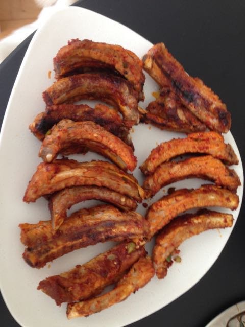 등갈비는 우선 잡내를 없애기 위해 된장이랑 월계수잎 넣고 삶은 뒤 양념해서 구웠어요.