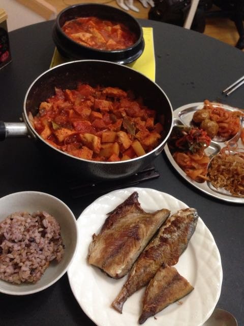 두부찌개랑 고등어랑 조기도 굽고 닭가슴살로 한 닭볶음탕이에요.