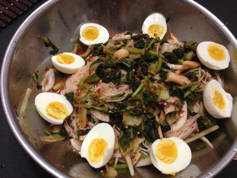 열무비빔국수에요. 계란은 보통 4개정도 삶아 넣는듯해요.ㅋ