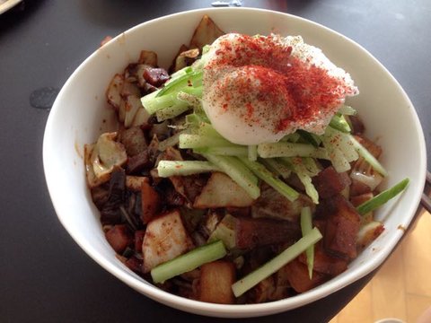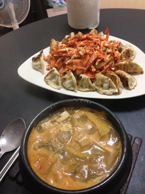 사온 만두로 비빔만두 만든 거에 된장찌개랑 먹었습니다.