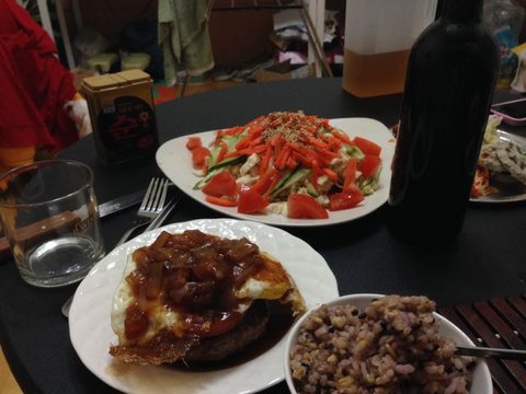 집이 더럽네요ㅜ 함박스테이크랑 만든 오리엔탈 소스 샐러드에요. 함박스테이크는 야채랑 갈은 돼지고기 소고기 빵가루 넣고 한번 만들때 엄청 많이 만들어 놓고 얼려놨다 한번씩 해먹어요.