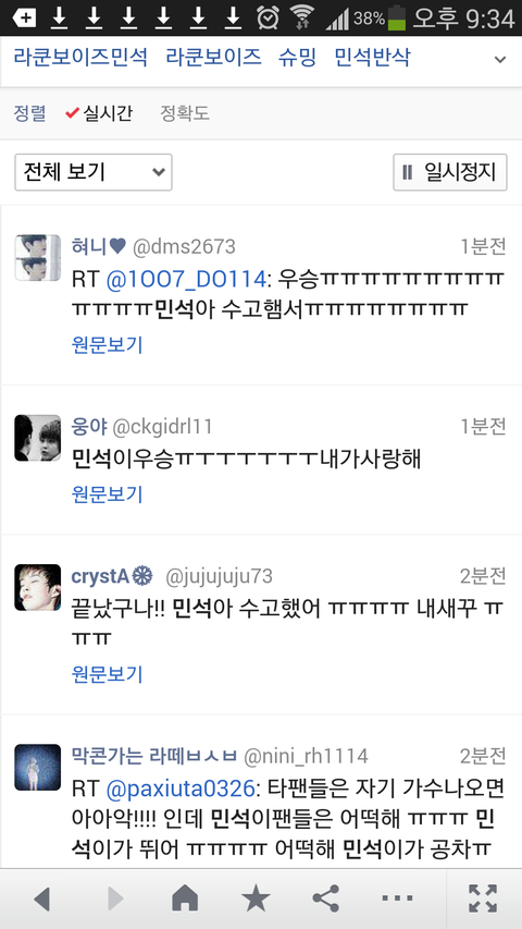 오후에 시작했는데 요번 대회는 빨리 끝나서 다행이다. 민석아 수고했어. 팬들이랑 즐겁고 신나면 그만인데 우승도하고ㅠㅠㅠ 푹 쉬고 장염 감기 빨리 다 나아~~~!
