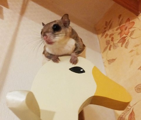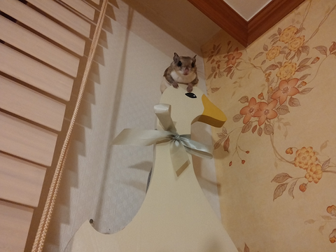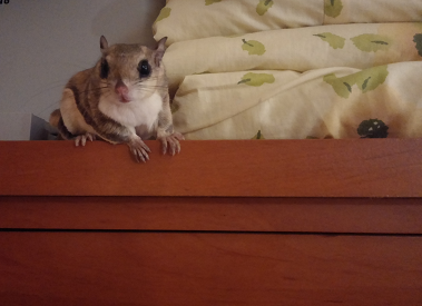 그런데 서랍 위에서 하늘다람쥐 뭉실이가 바시락대기 시작합니다.